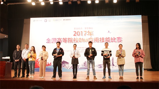 经过激烈的角逐,BIM(算量)造价应用技能大赛共产生了团队一等奖18个;BIM施工项目管理(沙盘)应用技能大赛共产生了团队一等奖15个;BIM计量计价专项一等奖18个,施工项目成本管理专项一等奖18个,BIM招标项目管理专项一等奖18个,工程项目策划专项一等奖15个,施工组织设计专项一等奖15个,BIM施工管理专项一等奖15个,BIM招标管理专项一等奖15个。其中,我校参赛队伍获得BIM(算量)造价应用技能大赛团队一等奖一项;BIM施工项目管理(沙盘)应用技能大赛团队一等奖一项,团队三等奖一项;BIM计量计价专项一等奖一项,BIM5D施工管理专项一等奖一项;我校被大赛组委会授予“优秀组织奖”荣誉。嘉宾分别为获奖学院颁发奖杯与奖金。