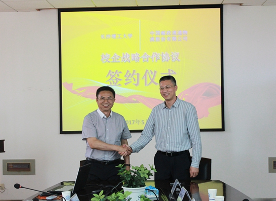 蒋昌波、徐江分别代表学校、企业签订了战略合作协议,双方将在技术服务、人才交流与培训、人才培养、实验室建设、创新创业平台建设等方面进行合作。
