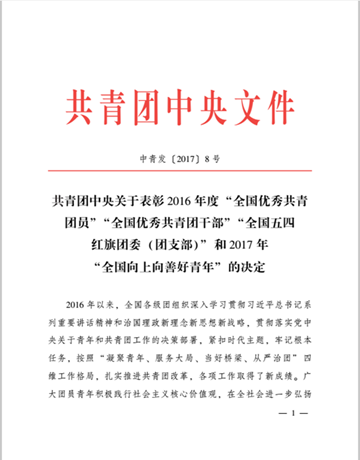 在“五四”青年节到来之际,共青团中央发布了《关于表彰2016年度“全国优秀共青团员”“全国优秀共青团干部”“全国五四红旗团委(团支部)”和2017年“全国向上向善好青年”的决定》(中青发[2017]8号),太阳成集团tyc122cc入口交通学院分团委荣获“全国五四红旗团委(团支部)”称号。这是团中央授予基层团组织的最高荣誉。