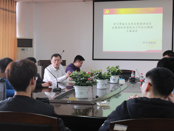 4月14日下午,谈传生副校长深入到所联系班级——交通学院道卓1601班参加“学习贯彻习总书记重要讲话及全国高校思想政治工作会议精神”主题班会,并做辅导报告。交通学院党委副书记田上和16级辅导员刘卓明参加了本次班会。
