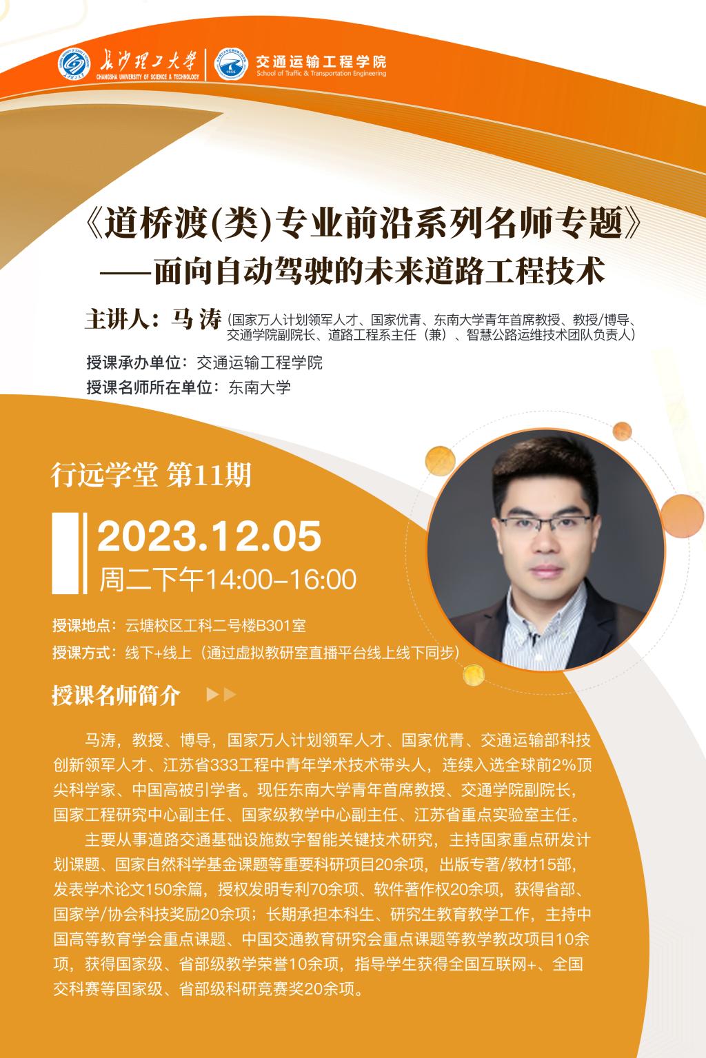 道桥渡(类)专业前沿系列名师专题:东南大学马涛教授谈“面向自动驾驶的未来道路工程技术”