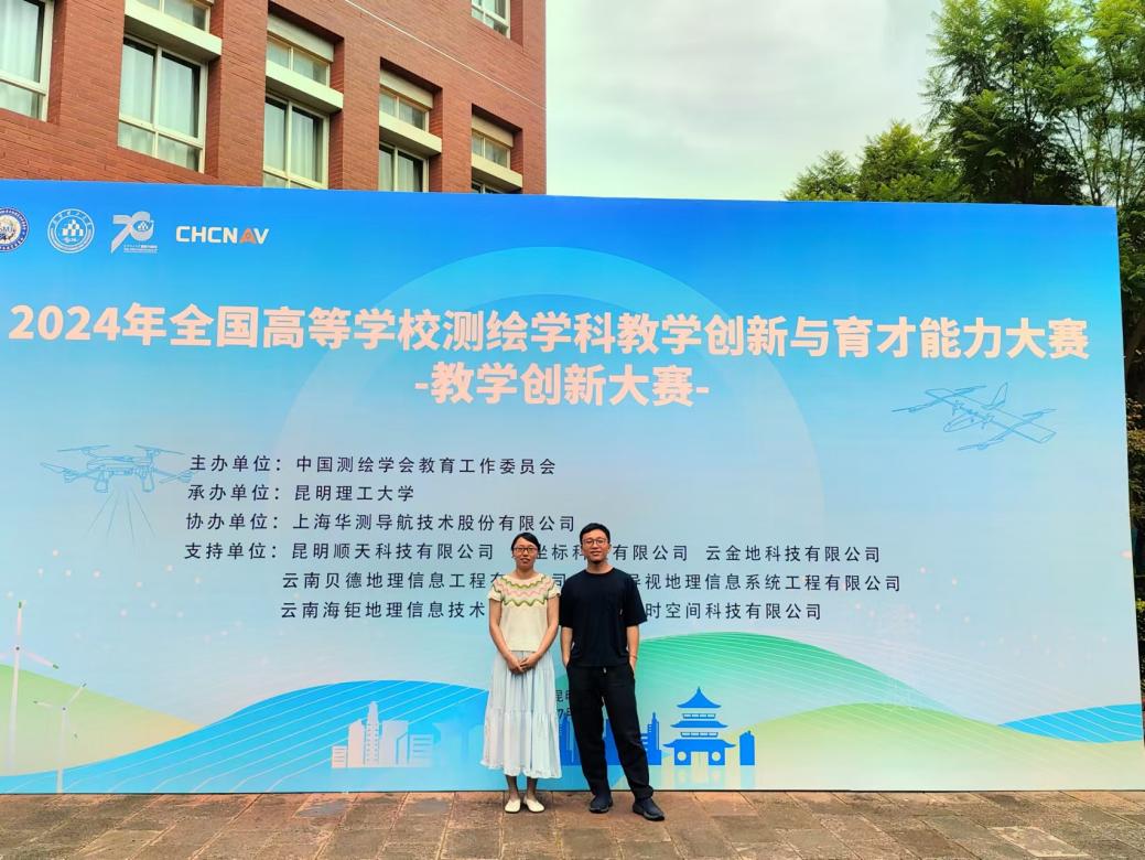 2024年7月31日,由中国测绘学会教育工作委员会主办,昆明理工大学承办,上海华测导航技术股份有限公司协办的2024年全国高等学校测绘学科教学创新与育才能力大赛决赛,在昆明理工大学隆重举行。测绘系夏清、朱珺两位老师在网评阶段脱颖而出,代表各自团队参加现场决赛。经过激烈角逐,朱珺老师教学团队(彭葳、饶维龙、邢学敏)荣获全国二等奖。