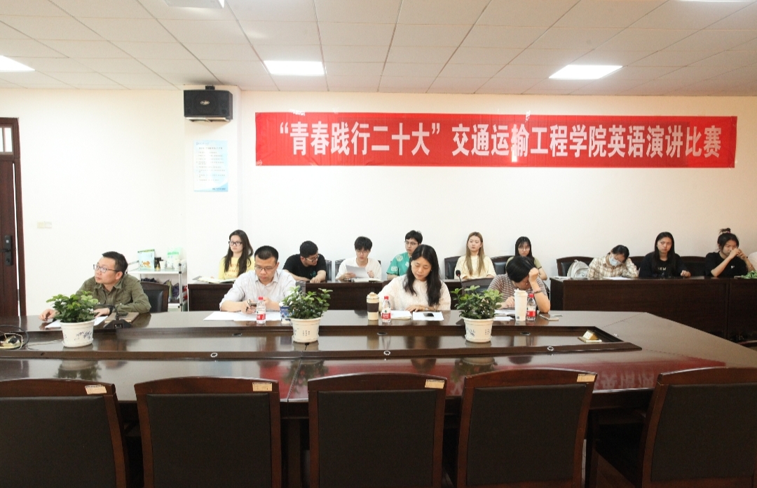 4月16日上午,交通学院于云塘校区工科二号楼B413举办“青春践行二十大”英语演讲比赛。交通学院党委副书记涂道勇与外国语学院张志武老师、彭娅老师、刘力老师担任评委,20名选手参加比赛。此次比赛的形式为定题演讲,每名选手有3分钟演讲时间。