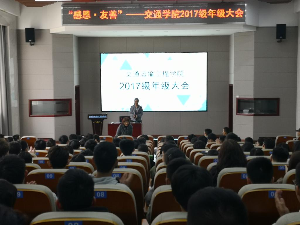 4月12日中午,2017级年级大会在工科二号楼科技报告厅召开,主题为“感恩·友善”。本次会议由17级年级辅导员肖敏强主持,院关工委吴滨老师与会。