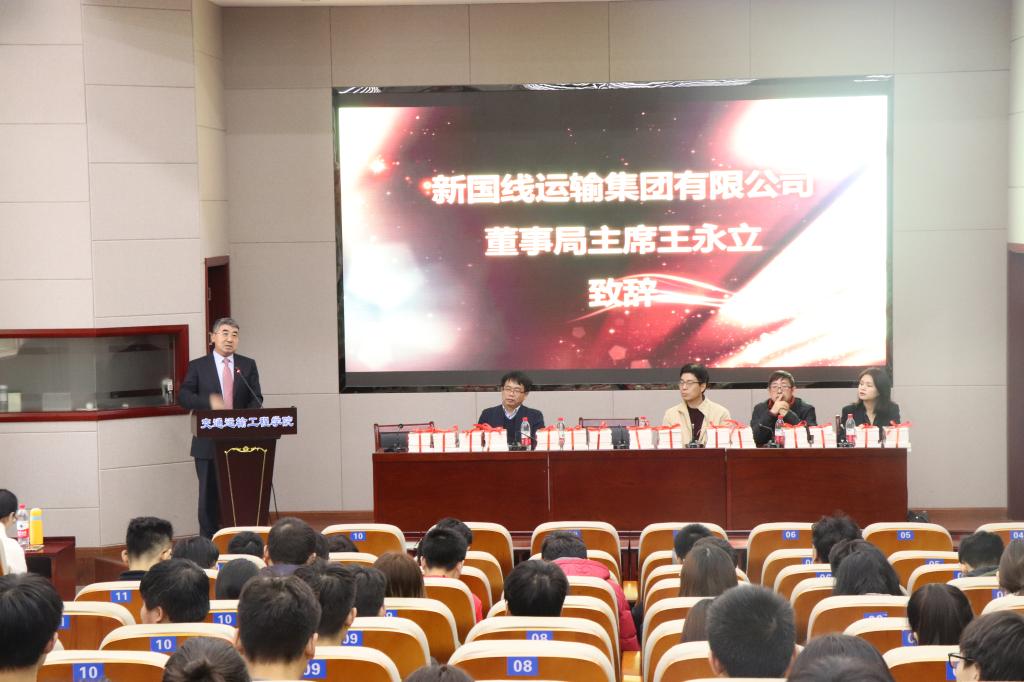 钱国平对王永利和张平的到来表示热烈欢迎,感谢新国线运输集团有限公司长期以来对交通青年的奖学金奖励与提供工作实习锻炼的机会,表示学院也将积极为新国线运输集团公司输送高质量人才。王永立对获奖同学表示了祝贺,并对获奖同学提出了几点期望要求,希望他们再接再厉,为祖国交通事业添砖加瓦,肩负起建设交通强国的使命。