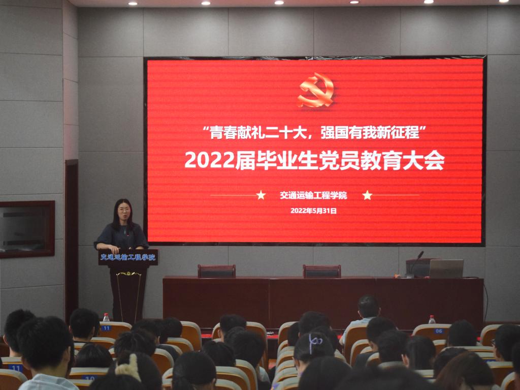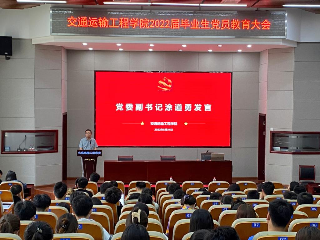 5月31日下午,交通学院于工二交通报告厅召开“青春献礼二十大,强国有我新征程”——2022届毕业生党员教育大会,本次大会由党建辅导员肖敏强主持,党委副书记涂道勇、18级辅导员曹骁及2022届全体毕业生党员出席大会。