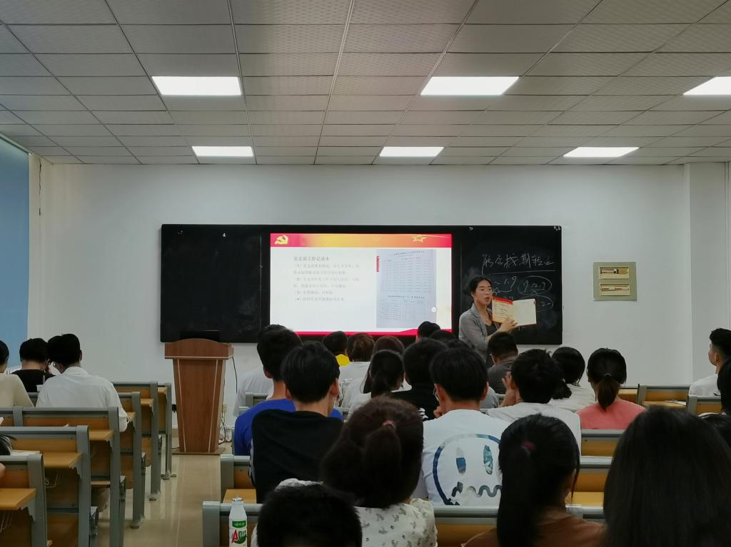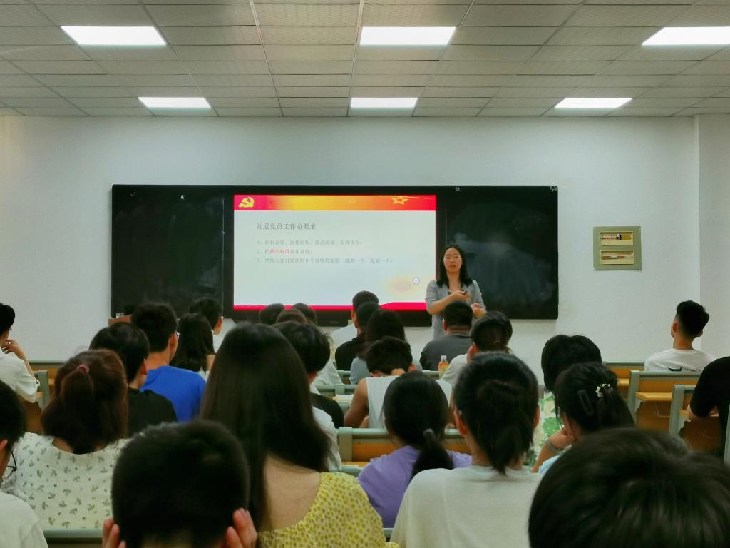 在本次培训会上,肖敏强对发展党员工作总要求、以及工作流程进行了详细讲解与指导,强调发展党员要将政治标准放在首位,各支委在发展党员工作中要做到公平公正、不降标准、严格程序,同时持续加强入党积极分子培养教育与考察工作,将入党积极分子管理落地落实,确保党员发展质量。此外,肖敏强就本学期党内组织生活开展计划与要求作出了具体说明与安排,要求各支部要严格党的组织生活,突出政治纪律、政治规矩,以“三会一课”“主题党日活动”等为载体,教育好、管理好党员。最后,肖敏强从党员档案核查等方面就如何做好新生党组织关系转接、入党积极分子接续培养进行了讲解。