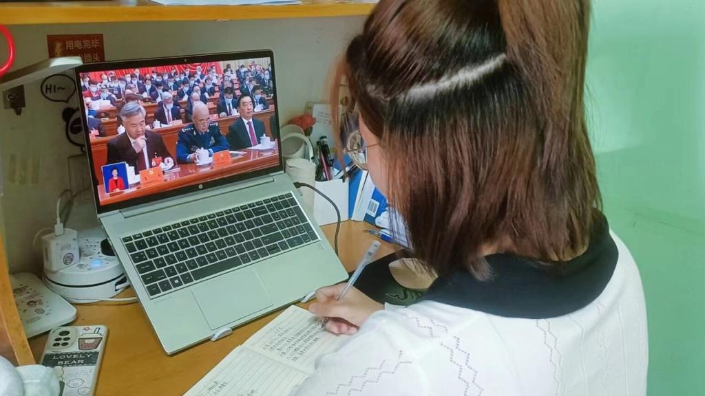在开幕会观看现场,全体学生聚精会神聆听了习近平总书记代表十九届中央委员会作的题为《高举中国特色社会主义伟大旗帜,全面贯彻新时代中国特色社会主义思想,弘扬伟大建党精神,自信自强、守正创新,踔厉奋发、勇毅前行,为全面建设社会主义现代化国家、全面推进中华民族伟大复兴而团结奋斗》的工作报告。报告全面、客观地总结了过去五年的工作和新时代十年的伟大变革,以习近平同志为核心的党中央不忘初心、牢记使命,锐意进取、攻坚克难,革故鼎新、励精图治,以巨大的政治勇气和强烈的责任担当,团结带领全党全军全国各族人民,不断推进习近平新时代中国特色社会主义思想,实现了第一个百年奋斗目标,共同谱写了民族复兴之路上的壮丽篇章。