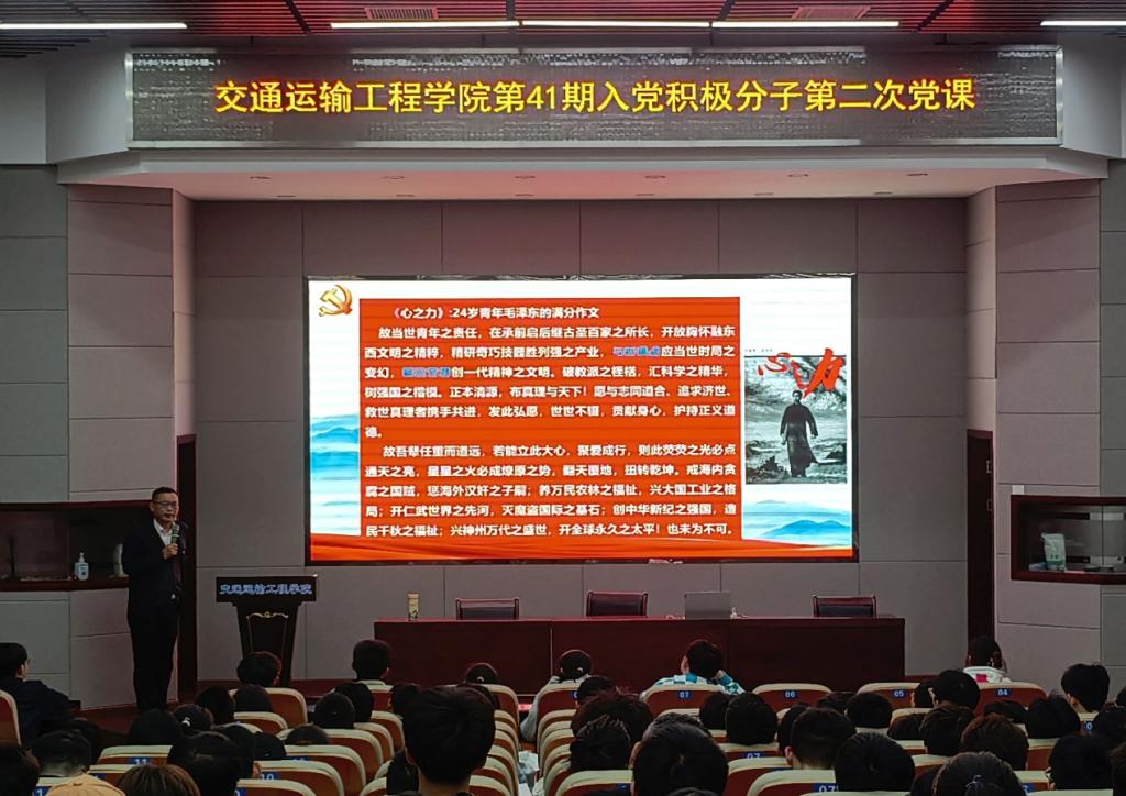 4月下旬起,交通学院分党校在第四十一期入党积极分子培训班组织开展集中理论教学。物电学院党委书记张国强、马克思主义学院教授余乃忠、学校研工部部长田上、交通学院党建辅导员肖敏强分别为本期学员授课。