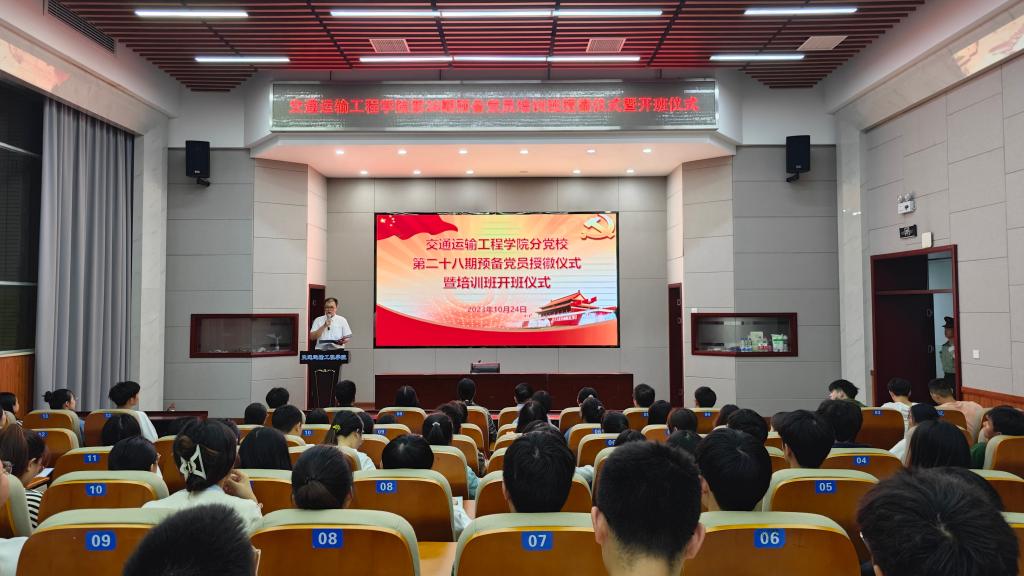 10月24日晚,交通学院分党校第二十八期中共预备党员授徽仪式暨培训班开班仪式于工二交通学院科技报告厅举行。交通学院党委副书记、分党校副校长涂道勇,分党校秘书肖敏强及第28期中共预备党员培训班全体学员参加。