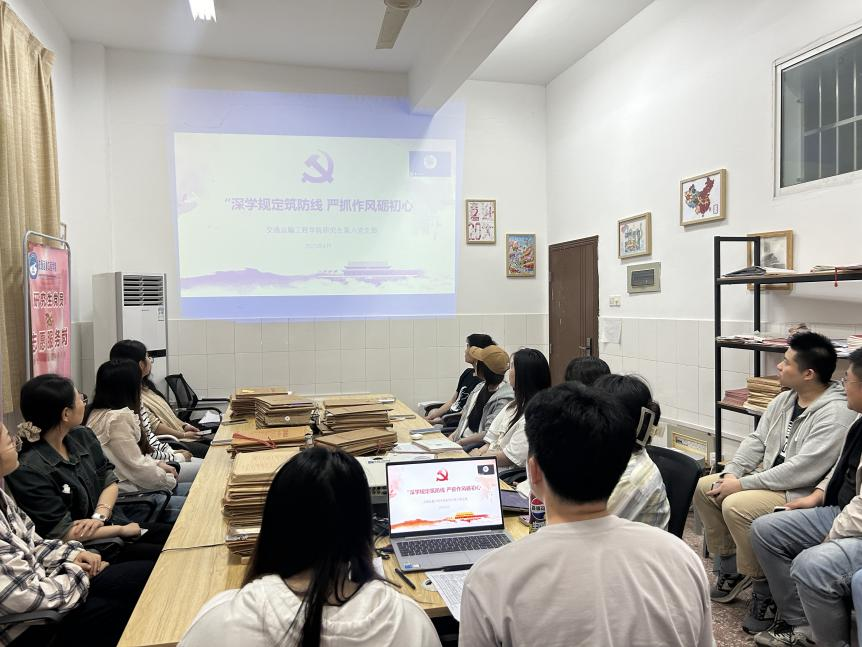 为强化党员纪律意识、推进作风建设,2025年4月9日,交通学院研究生第六党支部于公路实验中心B410举办“深学规定筑防线 严抓作风砺初心”主题党日活动,活动由党支部书记晏伍钒主持,全体党员参与。