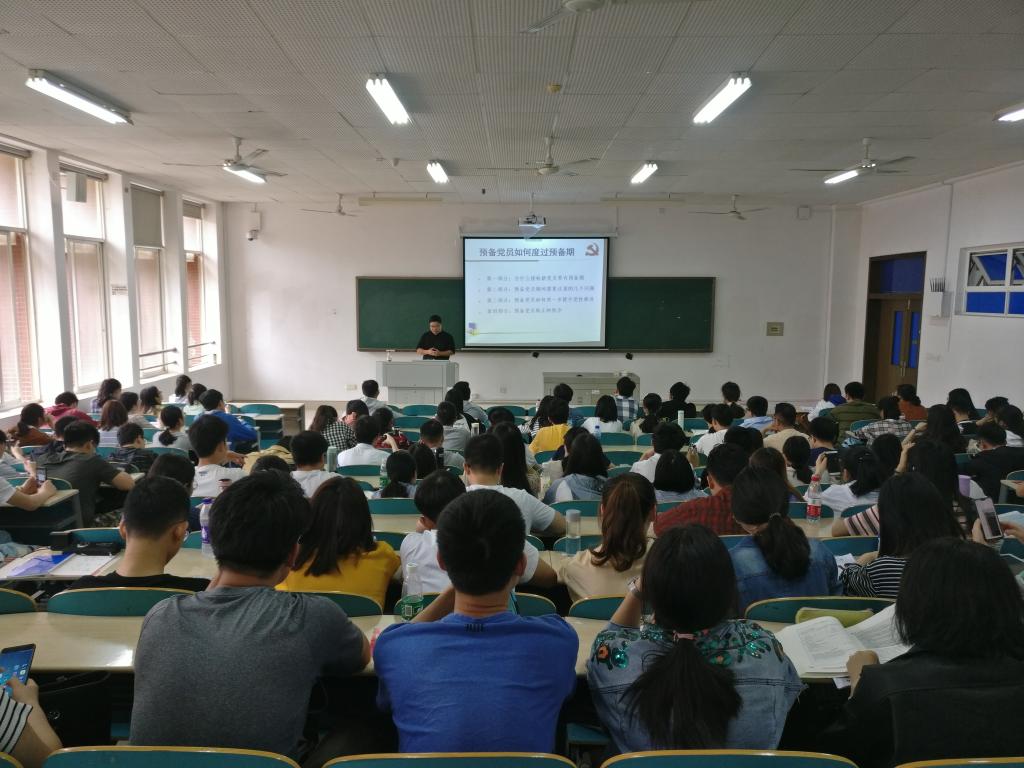 2019年5月14日16:00,交通学院第十九期预备党员培训班第三次党课培训在综合教学楼A-304进行。太阳成集团tyc122cc入口汽车与机械工程学院党委副书记靳攀科为本次培训授课,主题为《预备党员如何度过预备期》,第十九期预备党员培训班全体学员参加。
