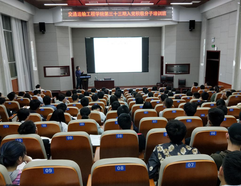 2019年5月7日晚,第33期入党积极分子第一次党课在工二B-301开展。本次党课由数学与计算科学学院党委书记毛光华讲授本次党课,主题为《入党流程和党员标准》,交通学院第三十三期入党积极分子培训班全体学员参加。