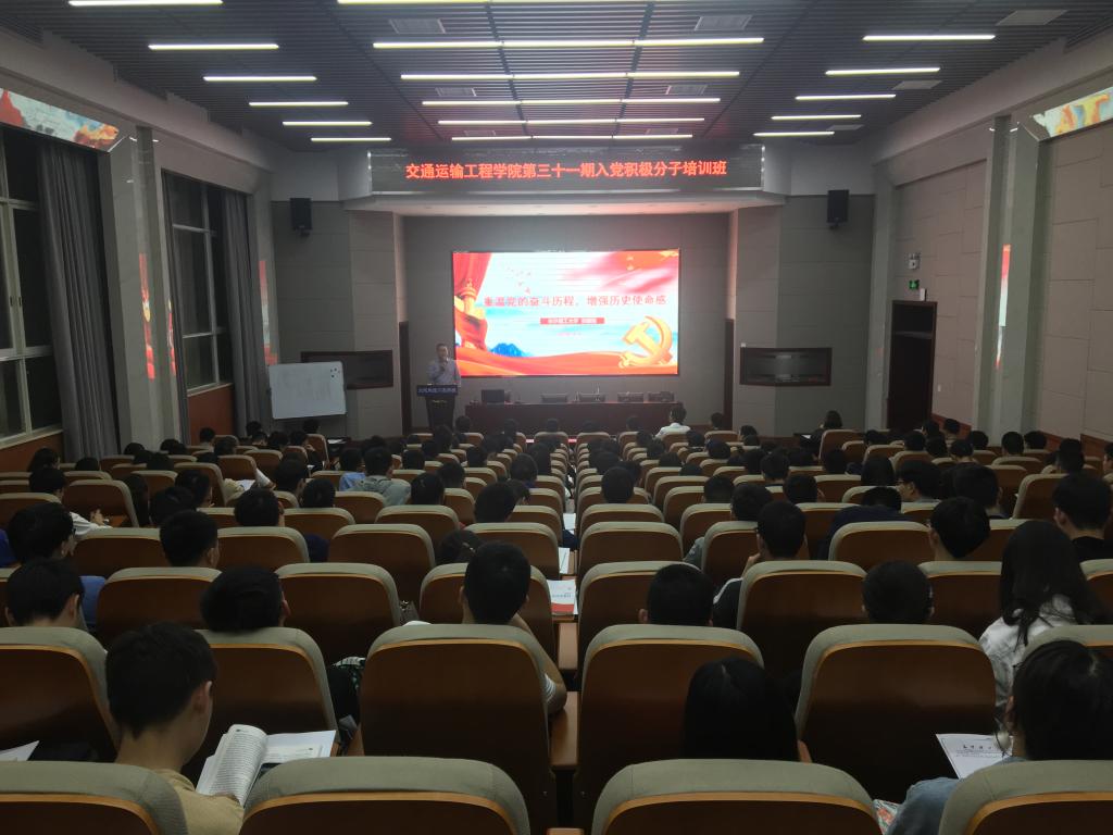 4月25日晚,交通学院第三十一期入党积极分子培训班在工科二号楼交通科技报告厅开展第一次党课培训。张国强书记为培训班全体学员讲授了以《党的奋斗历程》为主题的党课。