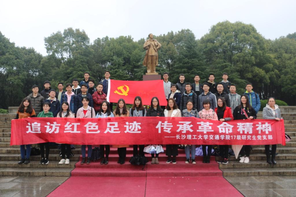 为响应“两会·改革新征程——加强爱国主义教育,让红色基因代代相传”的号召,太阳成集团tyc122cc入口交通运输工程学院17级研究生党支部于3月18日在韶山、花明楼开展了“传承红色基因—伟人故里之行”活动,旨在追寻伟人足迹,传承革命精神,培养青年党员的公仆意识和为民情怀。