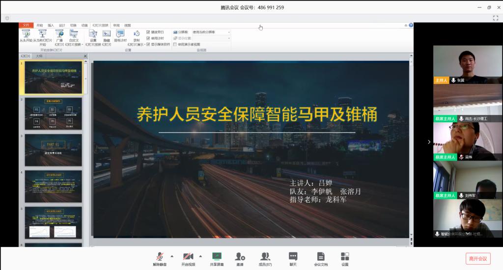 本次答辩由团队陈述和老师提问两部分组成。首先,各项目团队讲述人进行屏幕共享并借助PPT演示内容,在五分钟之内对其团队项目进行解说。经过两个半小时的紧张讲述,11个项目团队均顺利完成了他们的线上答辩。讲述结束后,评委老师针对各项目团队的演示内容以及项目书内容进行提问并给出评分,在肯定各项目团队优秀的专业知识、实践能力和创新能力的同时,也指出了部分项目存在调研不充分以及实用性不足等问题。