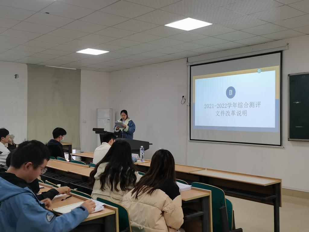 会议伊始,组织部唐瑾灿向团支书讲解了综测改革后的流程以及综测评定细则中一些条例的修订结果。随后,史亚杰进行关于综测改革的问题讨论与答疑,彭笠则针对学校近期开展的绿色出行活动进行发言,强调学生干部应做好带头作用,积极响应学校的号召。最后,组织部陈雅妮对《学生登记表》的填写规范做出说明与讲解。