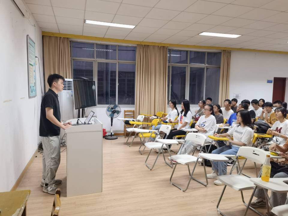 首先,向争良根据自身参赛经验,通过PPT的形式,为同学们详细介绍了三个基础竞赛,分别是全国大学生英语竞赛、湖南省大学生数学竞赛和数学建模竞赛,并重点强调了数学建模竞赛的具体注意事项;随后,向争良从寻找学习资源、总结学习方法、调整学习心态三个方面分别给同学们提出了有效建议。接着,潘博洋从个人经验出发,向同学们讲述了自己的参赛经历,并进一步普及了如何获取参赛路径,如何确定项目选题等方面的知识;最后,潘博洋提出,大一学生初次参赛可适当参加一些难度较小的比赛,学会从生活中寻找项目,再去寻找合适的指导老师,这样可以更加直观清楚的了解在参加科创赛事过程中遇到的问题,寻找解决办法,提升自身能力。