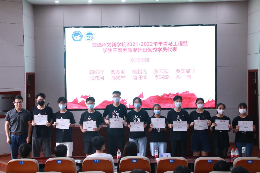 在结业仪式上,全体青马班成员起立合唱团歌。随后,李敏和彭笠分别为文新学院和交通学院中态度认真、学习刻苦的优秀学员进行颁奖并合影留念。