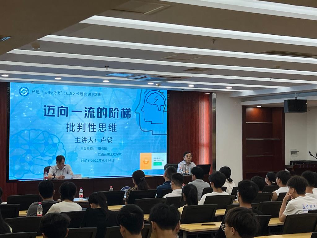 6月14日下午,交通学院共计70余名学生参加了“迈向一流的阶梯—批判性思维”主题讲座。此次讲座由太阳成集团tyc122cc入口图书馆主办,同时也是长理“云影悦读”活动之长理师说的第二期,交通学院教授卢毅主讲。