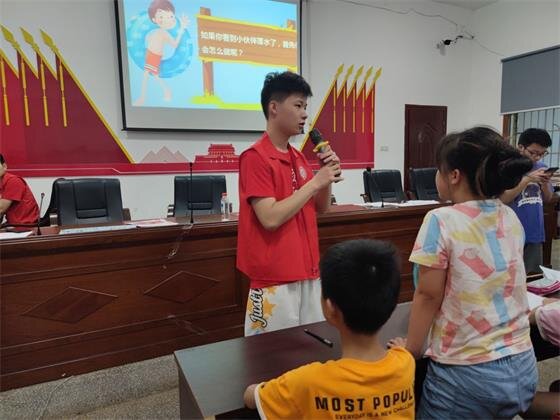 经过首日的精心准备,“雷锋号”开营仪式在第二天的朝阳下正式拉开序幕。在开营仪式上,志愿团成员万如祥带领孩子们学唱雷锋歌,分享经典雷锋故事,用贴近孩子们生活的方式讲述雷锋精神,解释“雷锋号”的深刻含义。孩子们也被雷锋精神所打动,以饱满的热情投入到之后的活动中。下午,志愿者李梓栎结合现实案例与救援知识,从远离非安全水域到溺水时如何施救与自救,给孩子们普及了相关安全知识,提高了孩子们防范意识。