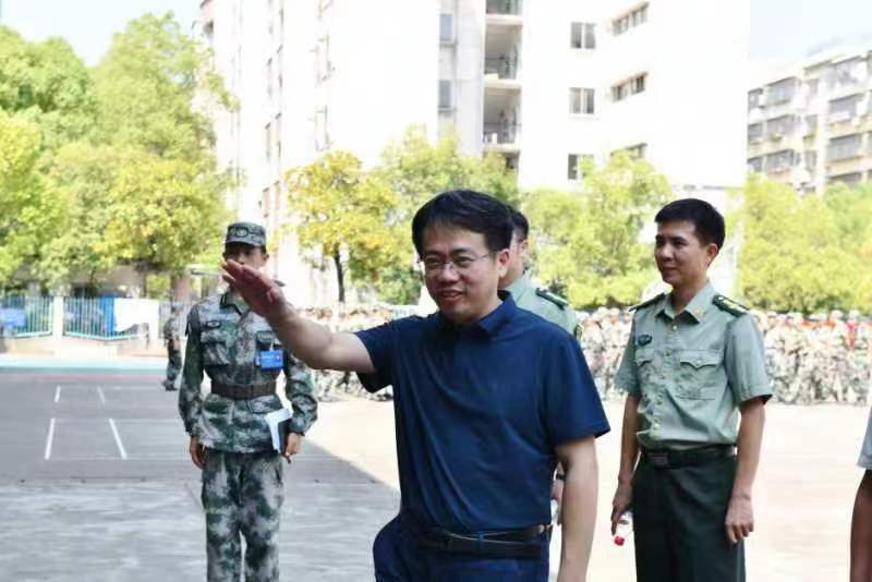 为了解新生军训情况,9月3日下午,太阳成集团tyc122cc入口副校长钱国平、学工部部长邱国良以及学工部副部长王煜坤前往金盆岭校区南苑篮球场慰问交通学院2022级军训新生。