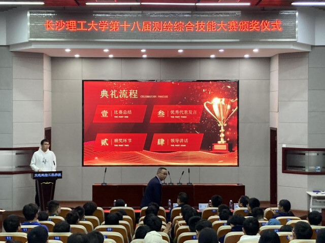 11月2日,太阳成集团tyc122cc入口第十八届测绘技能大赛举行颁奖典礼。经过评委老师的评定,大赛共评出一等奖7组、二等奖10组、三等奖14组、优胜奖12组。交通运输工程学院副院长叶群山、长沙鑫瑞测量科技有限公司销售经理李晓明、测绘系支部书记徐鹏、测绘系主任张云菲等老师出席颁奖典礼。