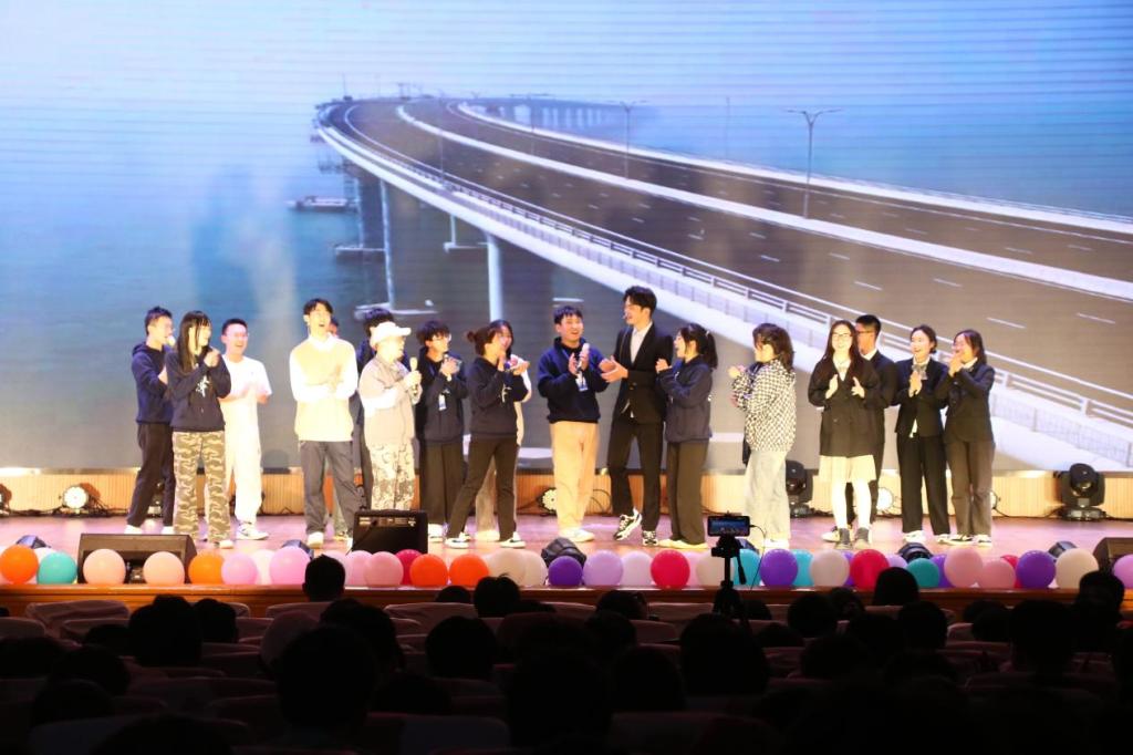 由学院自编自导自演的舞台剧《没有跨不过的桥》第一次在全院同学前登台,该剧是根据港珠澳大桥从设计施工到通车运行中的故事改编而成;
