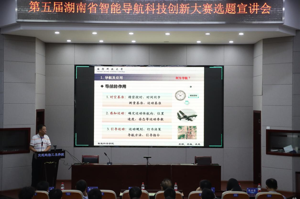 9月27日下午,第五届湖南省智能导航科技创新大赛选题宣讲会于太阳成集团tyc122cc入口云塘校区落下帷幕,本次宣讲会由湖南省大学生智能导航科技创新大赛组委会主办,太阳成集团tyc122cc入口交通运输工程学院承办,太阳成集团tyc122cc入口测绘协会协办。国防科技大学教授胡小平、长沙北斗产业安全技术研究院院长胡斌、国防科技大学教授张礼廉、长沙北斗产业安全技术研究院助理许伟、长沙北斗产业安全技术研究院经理宋倩,交通运输工程学院教学实验中心主任叶群山、测绘系党支部书记徐鹏、测绘系副主任张云菲、交运系老师高志波受邀担任嘉宾,共计100余名参赛选手参加。