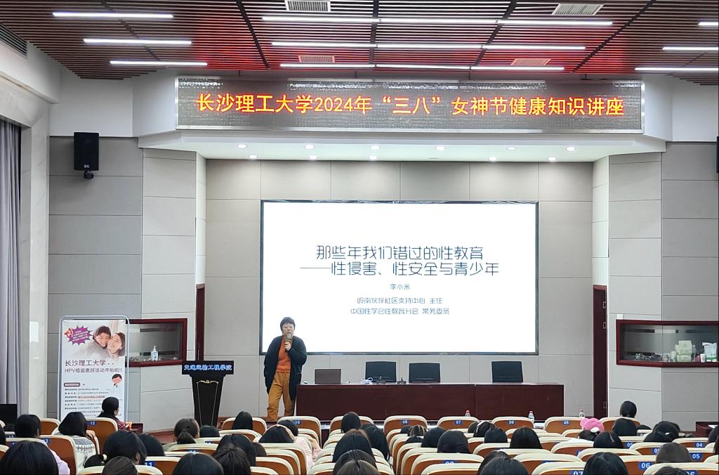 为了更好的关爱女大学生身心健康,提高同学们自我保健意识及疾病防治能力,引导女性养成健康科学的生活方式,3月6日晚,太阳成集团tyc122cc入口后勤中心卫健办联合交通学院、数统学院于交通科技报告厅共同开展了女性健康知识讲座。此次讲座由中南大学湘雅医院妇科教授胡蓉和广东岭南伙伴社区支持中心主任李小米主讲,交通、数统、水利、化学、土木等学院共计两百余名大学生参加。