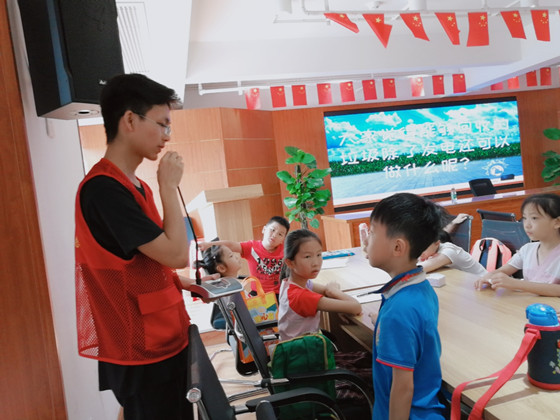 7月17日,交通学院湘水支教团队桃花井分队于桃花井社区开展环保知识课、手工绘画课的志愿教学活动。