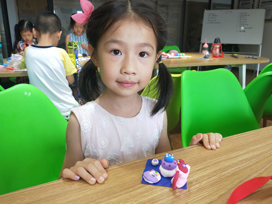 下午,志愿者刘思杨和唐欣雨分别对大班的手工绘画课和小班的手工捏泥课进行了教学。在整个课堂过程中孩子们充满热情,充分发挥想象,将五彩斑斓的黏土变成了各种各样的实物,将心中的大自然完美呈现在展板纸上。