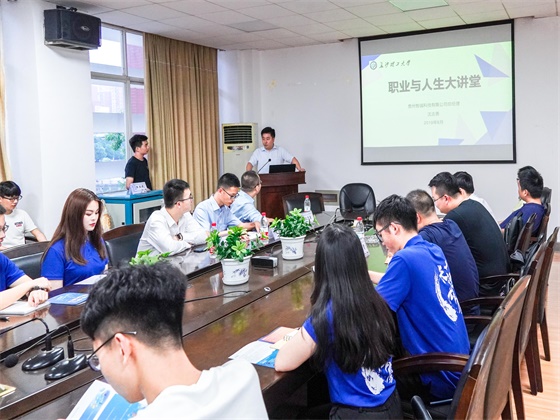 6月24日晚,交通学院职业与人生大讲堂--校企联合学生座谈分享会在工科二号楼B-413举行。贵州智诚科技有限公司总经理、交通工程专业2005届校友沈志勇、副总经理张国良为我校各年级学生作职业生涯主题分享,校团委书记文丽丽、院党委副书记田上、教授王正武出席分享会,雄鹰班部分成员、2016级全体交通工程学生参加会议。