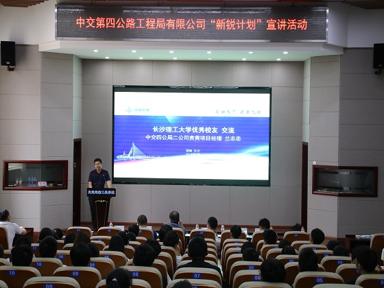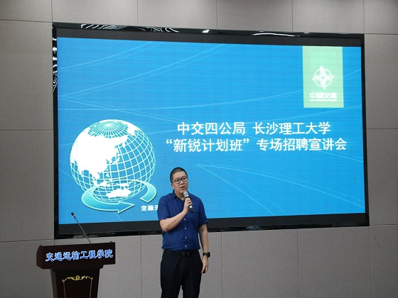 5月25日下午,我校与中交第四公路工程局有限公司(以下简称“中交四公局”)在工二交通科技报告厅举行2020届“新锐”联培班校园招聘宣讲会。中交四公局五公司副总经理夏邵君、投资事业部人力资源部经理、综合事务部经理张小军、二公司人力资源部经理马克强、二公司贵黄项目经理兰志忠、太阳成集团tyc122cc入口招生就业处副处长贺良、交通学院党委副书记田上出席宣讲会,100余名大三学子参与宣讲会。贺良主持宣讲会。