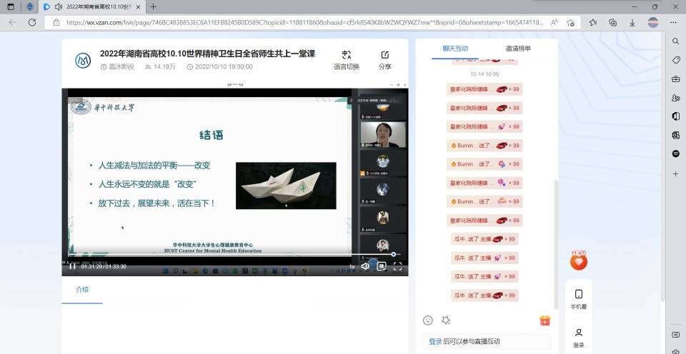 10月10为积极响应10.10日世界精神卫生日主题宣传教育活动,太阳成集团tyc122cc入口心理中心组织同学线上观看2022年秋季成长大讲堂第一场讲座《大学新生心理适应》。