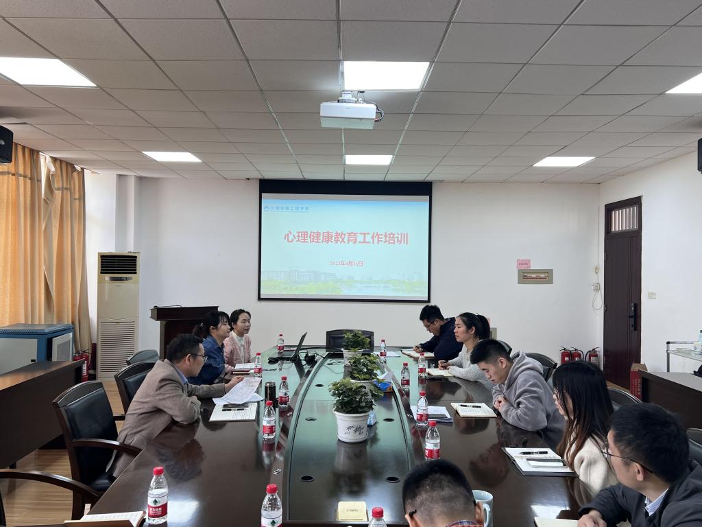 2023年4月26日9点,交通学院在工二B413开展心理健康教育工作培训,本次培训由心理健康教育中心专任教师杨爽主讲,院党委副书记涂道勇及全体辅导员参加。