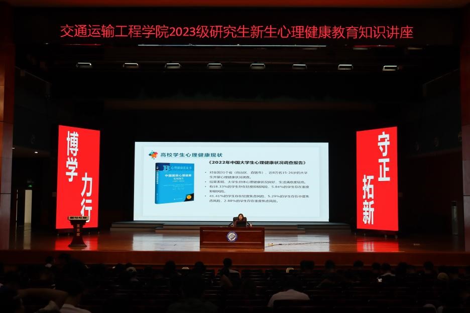 9月23日,交通运输工程学院在云塘校区大会堂开展研究生新生心理健康教育知识讲座,讲座的主题是“积极心理,蓬勃人生”。本次讲座特邀文学与新闻传播学院辅导员、国家二级心理咨询师李婵主讲,交通运输工程学院2023级研究生新生参加。