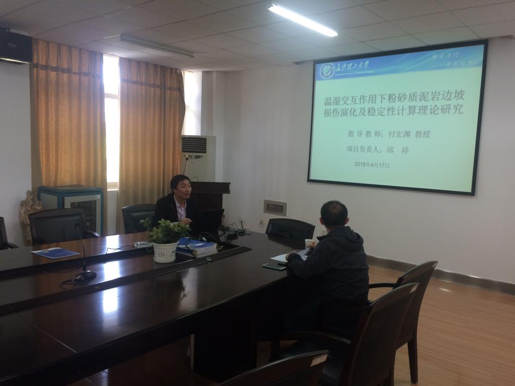 4月17日下午,2018年研究生科研创新项目学术汇报会在云塘校区工科二号楼B413教室进行,研究生办公室赵朝晖老师组织了本次会议,副院长高英力教授作为本次项目的答辩老师,并对本次所有参与答辩的博士、硕士的研究成果一一进行了点评和考核,2015级、2016级、2017级同学及部分博士听取此次汇报会。
