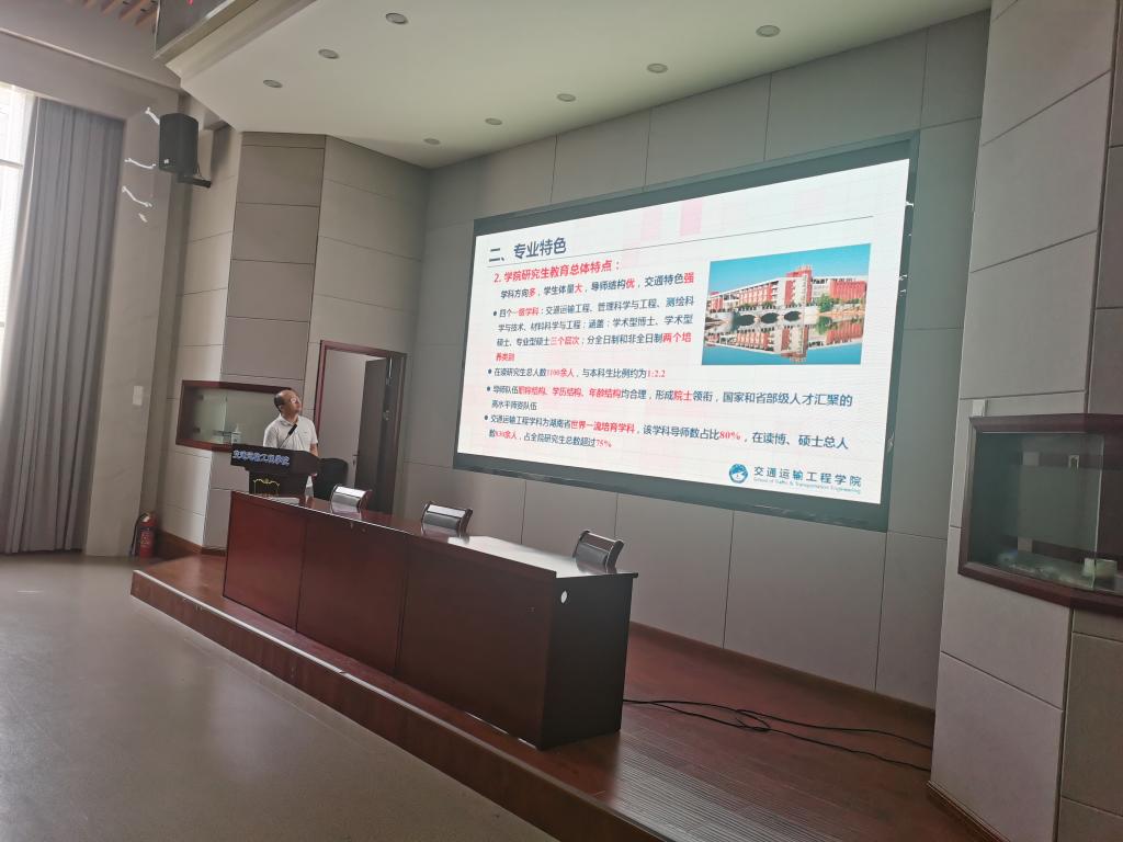 交通运输工程学院副院长高英力从学院研招基本情况、往年研招数据分析、报考本校(院)的优势以及学校招生政策等方面为学生做了系统的招生宣讲。