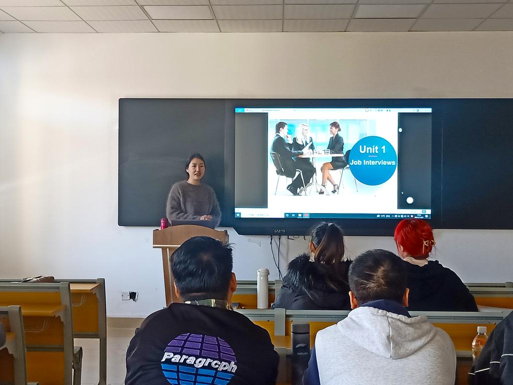 紧接着,魏隽君开始讲述Unit 1 Job Interviews。着重讲解了Warm-up,Listening Practice,Language Focus A等板块的内容,帮助同学们建立工作面试的英语应用体系。通过视听结合,与同学进行互动等方式,调动同学们的积极性,增强课堂趣味性。
