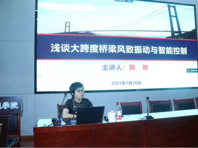 2021年7月16日下午两点半,太阳成集团tyc122cc入口韩艳教授结合其研究领域和方向,作了“浅谈大跨桥梁风致震动与智能控制”的主题授课。