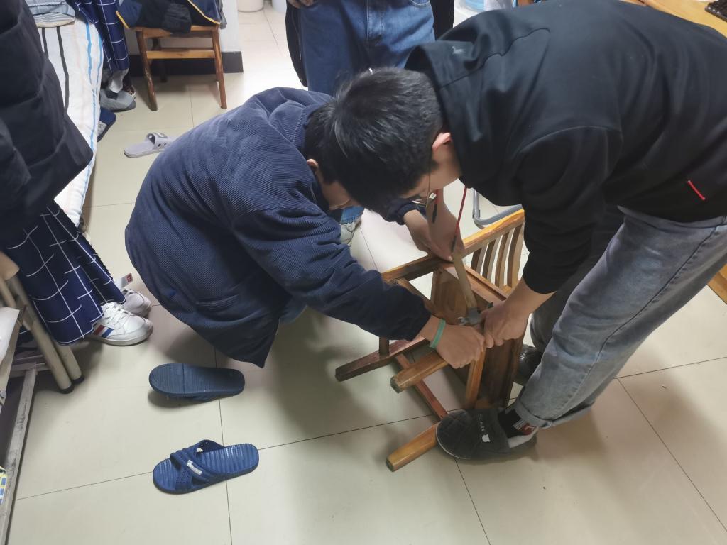 活动过程中,义务维修队深入每间报修宿舍提供维修服务,主要为同学们解决桌椅损坏、柜门无法关闭、抽屉运作故障等问题,本次义务维修活动共计维修130余件寝室物品。义务维修队成员李志远分享道:“非常荣幸能够加入学生社区义务维修队这个集体,队员们团结协作,为同学解决实际困难。同学们的积极配合,也促使维修工作开展得顺利有序。但我的维修能力还有待提高,有些较为简单的问题,例如柜门合页的更换,花费了较长时间才安装好。从此次活动中,我感受到了帮助同学的乐趣,我觉得非常充实,很有意义,我希望今后有越来越多的同学能够加入我们!”