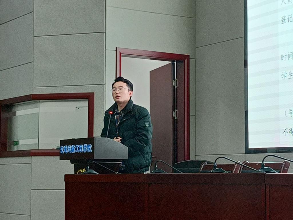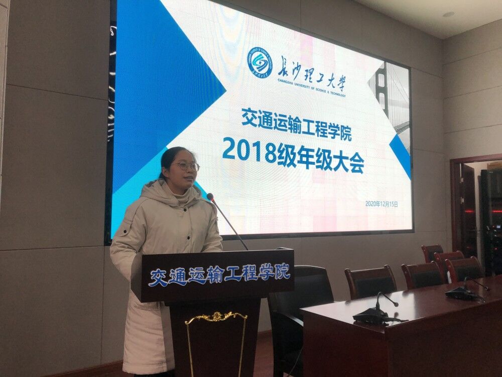 12月15日下午,交通学院于云塘校区工科二号楼交通科技报告厅召开本学期2018级年级大会。2018级辅导员曹骁、谢琼出席会议,交通学院2018级全体学生与会。