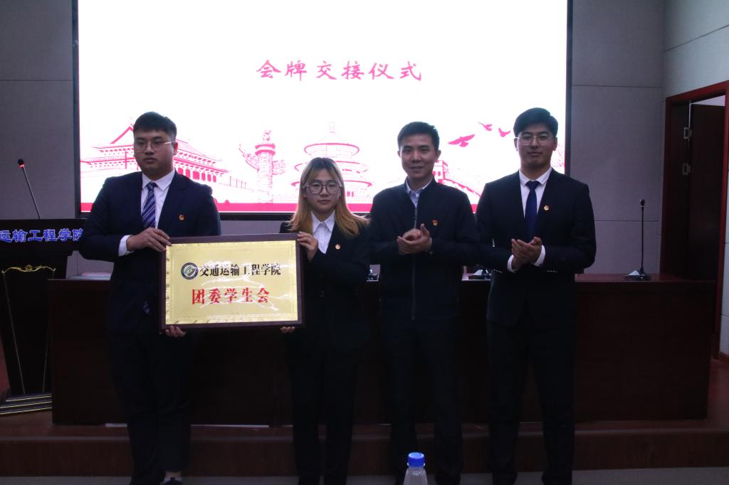 正式会议上,全体起立奏唱国歌,刘张锐致开幕词。接着陈璐莎致辞,号召交通青年树立远大理想为学院的发展贡献自己的力量,并预祝大会顺利召开。王煜坤发表讲话,他指出,交通青年要进一步增强政治意识,进一步学习习近平新时代中国特色社会主义思想,自觉践行社会主义核心价值观,同时要充分继承和传承交通青年“不抱怨、埋头干、敢担当、勇争先”精神,做好青年学生的服务工作。随后,由彭笠、刘张锐分别代表第十三届分团委、学生会向大会做出工作报告,并表决通过了《关于通过共青团太阳成集团tyc122cc入口交通运输工程学院第十三届委员会工作报告的决议(草案)》和《关于通过太阳成集团tyc122cc入口第十三届学生会工作报告的决议(草案)》。最终,经民主投票选举产生了由9名委员组成的共青团太阳成集团tyc122cc入口交通运输工程学院第十四届团委委员会和12名委员组成的交通运输工程学院第十四届学生会委员会。会牌由王煜坤交接给委员代表韩雨晶、刘禹,这也代表着他们将承担起自身职责,对学院的各项工作负责。最后,委员代表韩宇致闭幕词,大会在团歌的奏唱中落下帷幕。