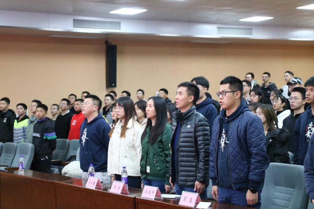 首先,全体人员起立合唱团歌。随后,彭笠为2020级学生干部们致辞,提出三点要求:第一要树立远大理想,第二要热爱科学,追求真理,第三要积极进取,乐观自信并对2020级学生干部们表达了美好的希望与祝愿。