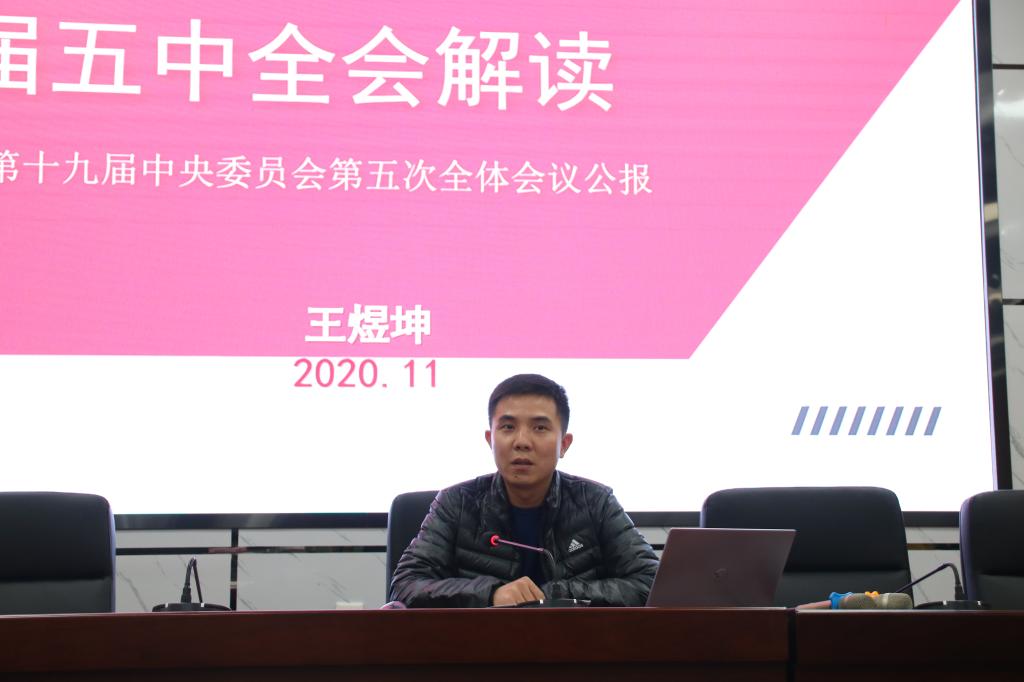 致辞结束后,王煜坤以“党的十九届五中全会精神解读”为主题开展青马班第一课。在授课过程中王煜坤根据中国共产党第十九届中央委员会第五次会议,结合党的十九届五中全会指导思想,展示了决胜全面建成小康社会所取得的成就,同时提出了目前国家所面临的机遇和挑战,鼓励同学们要加强对马克思主义、对党的理论学习,做到知行合一,在实践中检验理论,最后希望学生干部们可以起到示范引领作用,在同学们中发挥领导力,凝聚力,号召力。