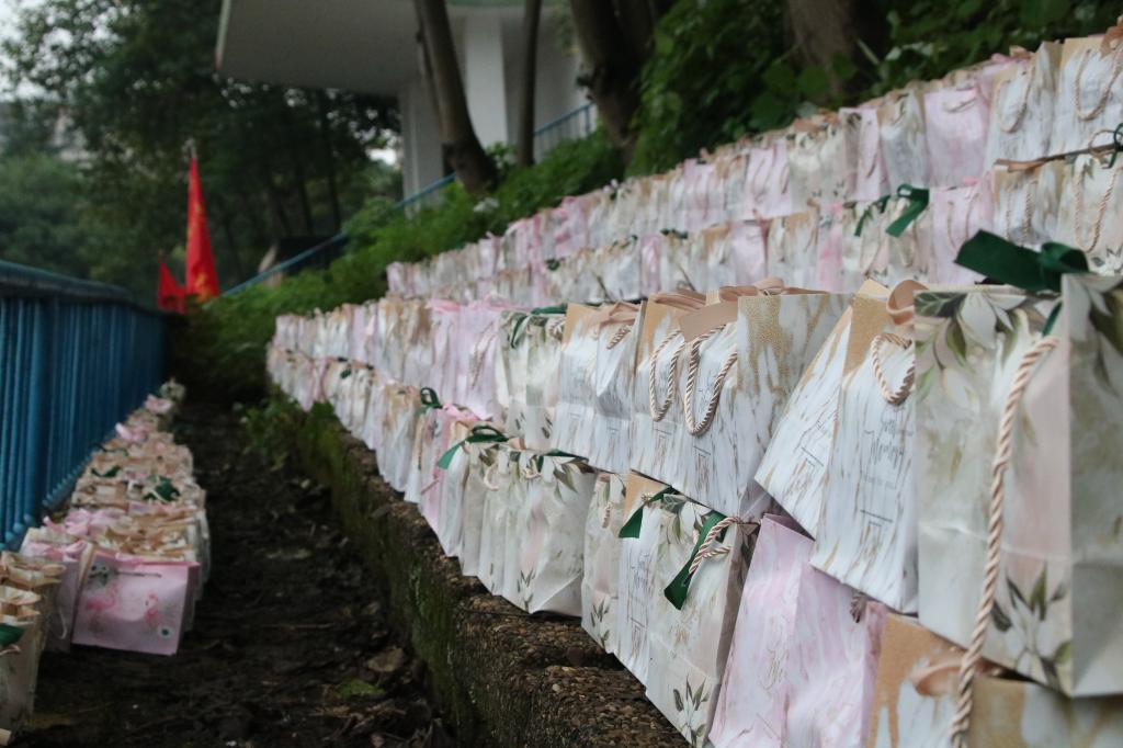 看望期间,王煜坤向2020级军训学生介绍了前来慰问的领导们,孔伟红代表院领导对军训的教官们表示感谢,并赞扬学生们在军训中所展现出的坚韧不拔的优良品质。随后,院领导们为2020级军训学生送上月饼、苹果、王老吉等慰问品,慰问品精致的包装体现着院领导对新生满满的关怀。