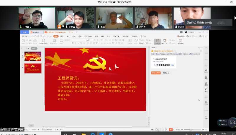 图2 长理&中交联培班全体成员线上开展“工程师宣誓”