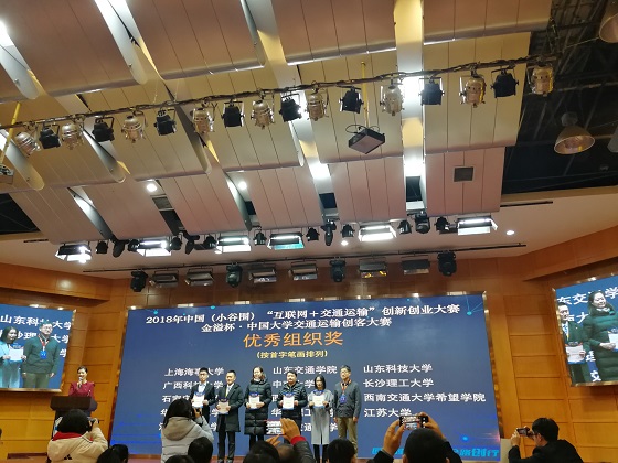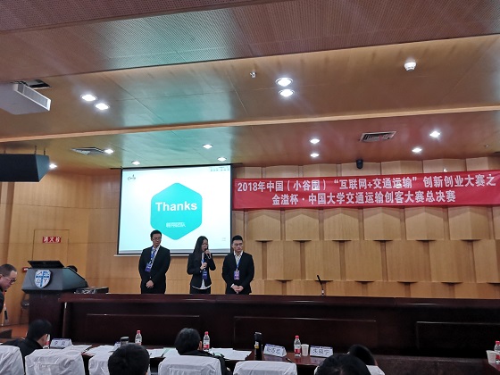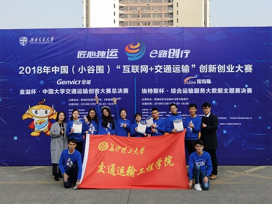 12月10日至12日,2018年中国(小谷围)“互联网+交通运输”创新创业大赛之金溢杯·中国大学交通运输创客大赛总决赛在西南交通大学举办。我校交通运输工程学院“RE轻骑——无源助力自行车”、“互联网+共享智慧物流箱”、“儿童智能公交卡设计”三个项目团队进入决赛,陈旭亮、焦雨玲、张雨涵、江景文、唐鹏、肖东翔、张雪琴、王杰、曾晨妮、蒋悦、张思佳、曾晶、宁博、曾青、陈夙乾这15名同学在领队马玉文、彭笠老师和指导老师周爱莲、袁翔、向慧、弓晋丽与龙科军的指导下,经过激烈角逐,均荣获三等奖。