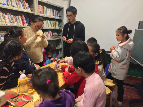 在教学过程中,青志协的志愿者们开设传统文化、美工、手语三门课程。志愿者们耐心地指导孩子们手语操姿势,让孩子们体验传统文化的魅力,而孩子们也专注地学习新的知识。